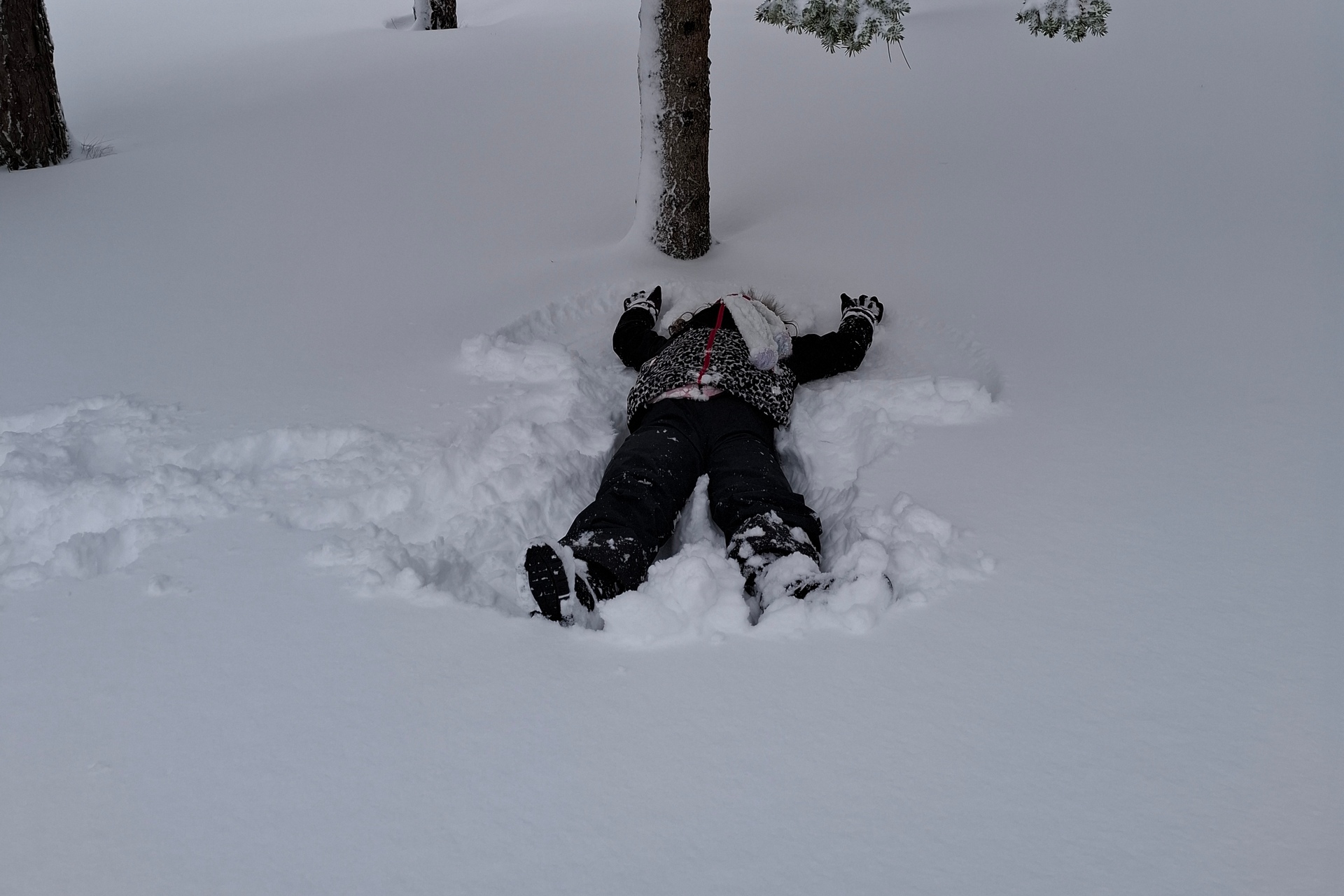 On Sunday, it stopped snowing and families spent most of the morning walking in the winter nature. The bobsleigh that Sofia brought with herself and that she had no problem lending to other children were also in the course. And the first snowmen came into the world.