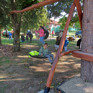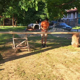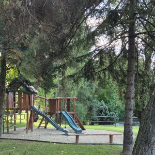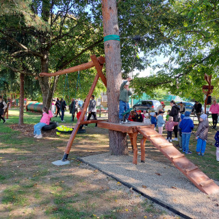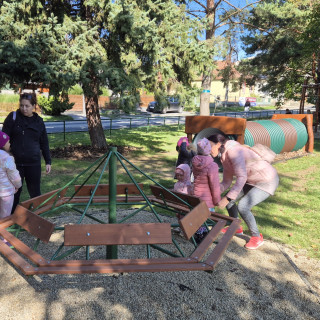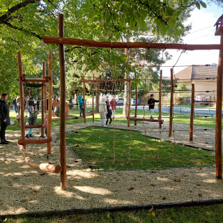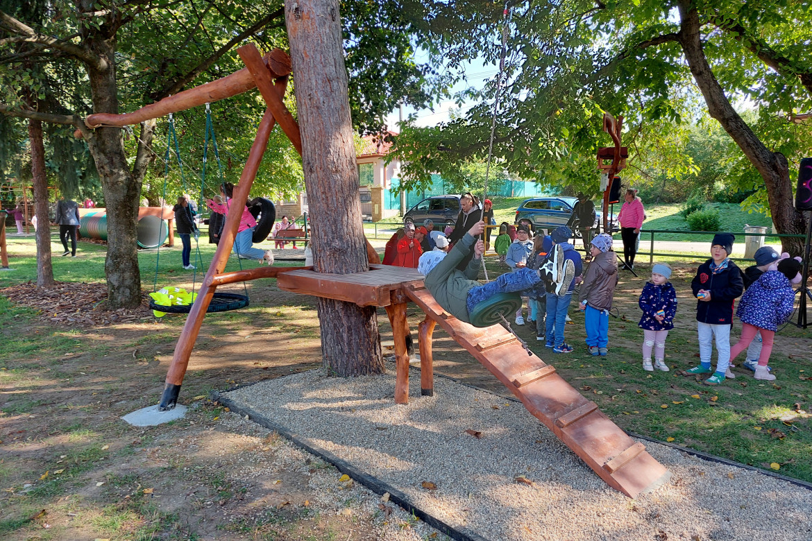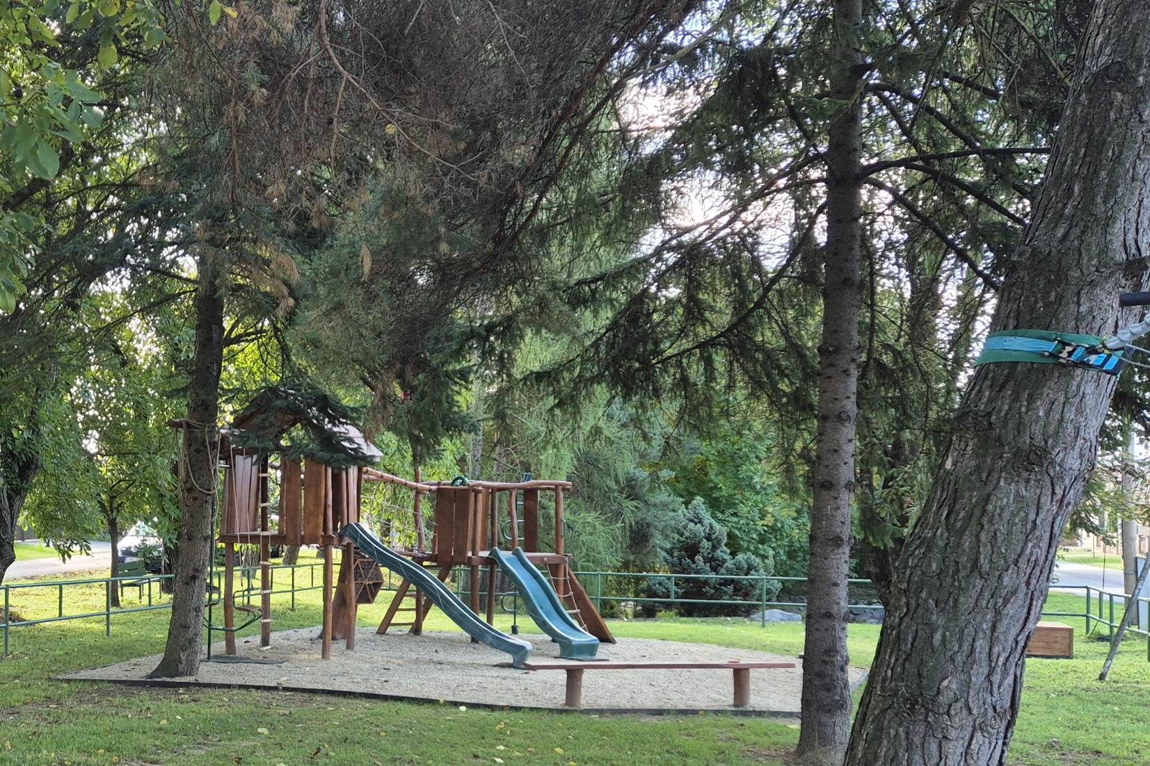 A Slovak proverb says: Little music for little money. In this case, however, this is not the case, there is definitely a lot of music here. What the village managed to build on a large fenced area surprised us. The relaxation area consists of a gazebo with seating. The dominant feature of the entertainment part is a wooden house with slides, set on one of the trees. A complex playground with swings, trapezes, slides and two zipline cable cars has been built here. There are also structures with climbing elements that support children's movement, coordination and balance.