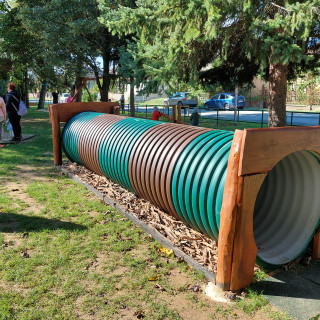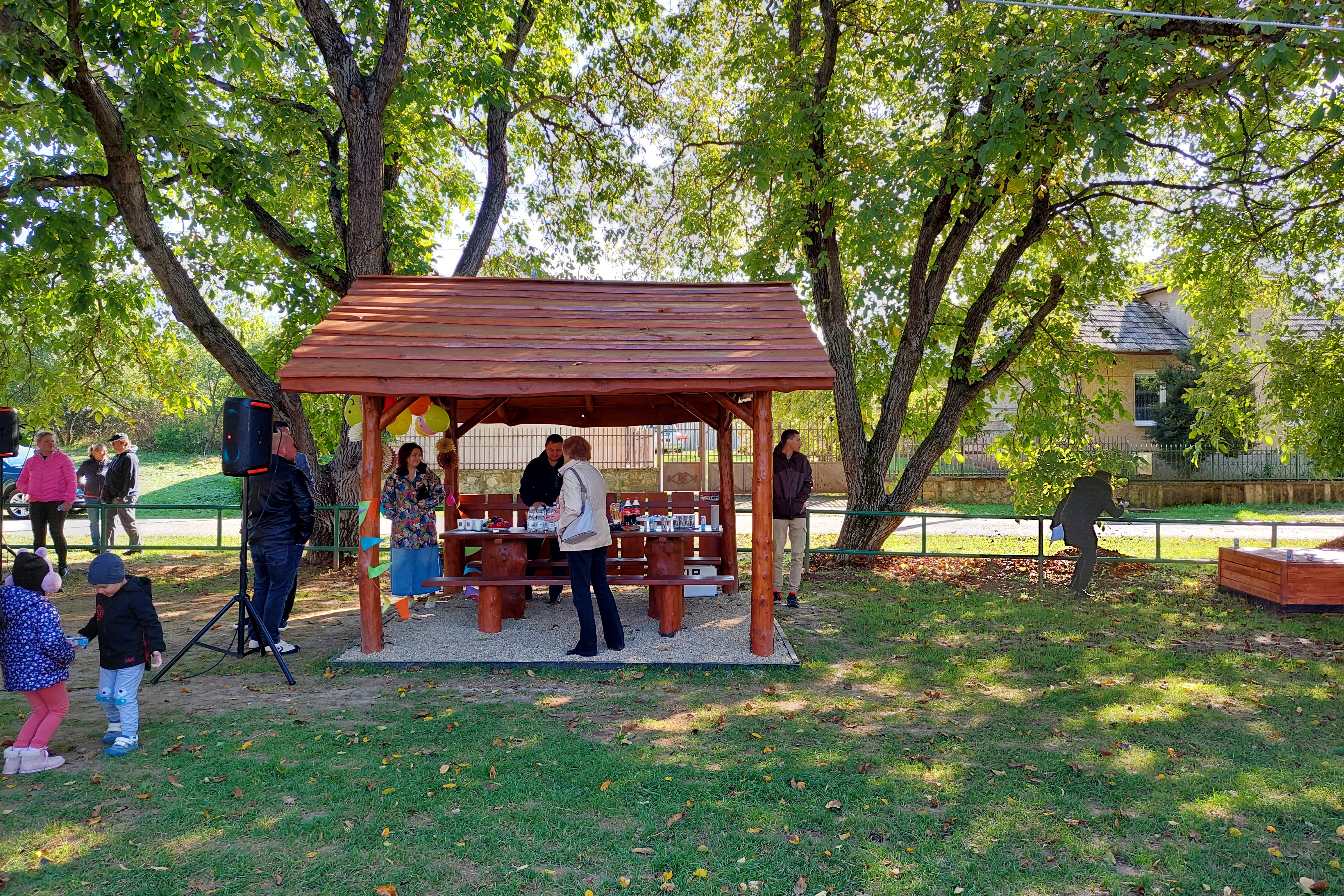 Almost all work was carried out on their own. Volunteers from the ranks of the inhabitants of the village, many of whom are employees of USSK, joined forces with the employees of the municipality, the civic association V plus, the local organization Csemadok in Cestice, as well as employees of the municipality performing community service. The municipality received part of the material from partners, whether wood or corrugated pipe, which is used for road construction, and a tunnel was created from it, which is popular with the little ones. Recycled waste containers that would otherwise end up in a landfill have also found use here. Thanks to the wooden cladding, they fit naturally into the park environment.
