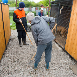 The cold and rainy weather was not a good omen, but the volunteers showed their big heart for the dog shelter and came in an extremely large group. Several of them also came with family members, including children. Together with the shelter workers, they formed work teams.