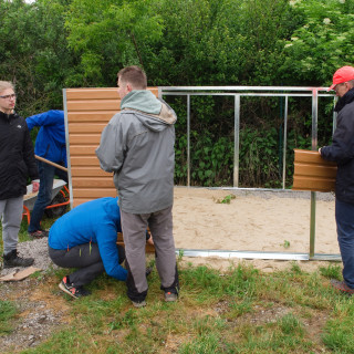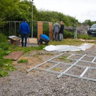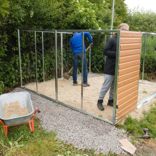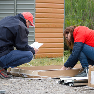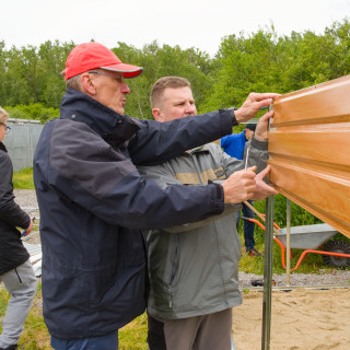 Under the skilful hands of a group from the financial department, a metal house has "grown", which will be used to store garden equipment.