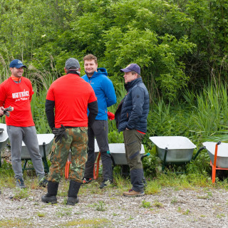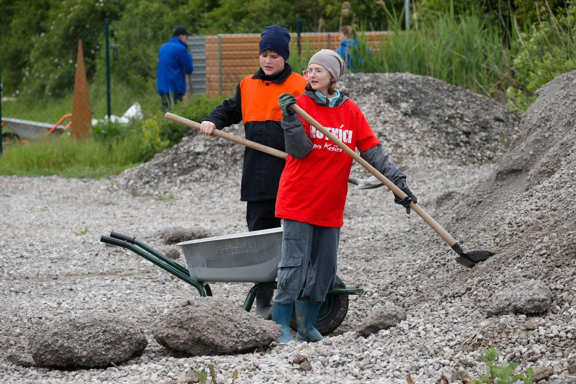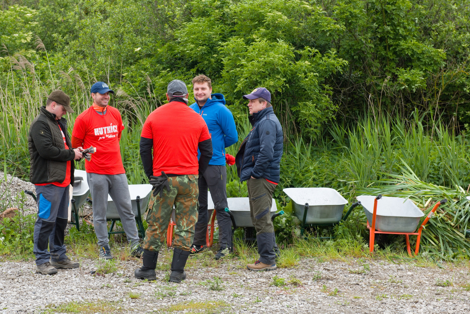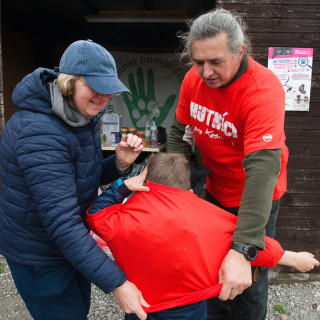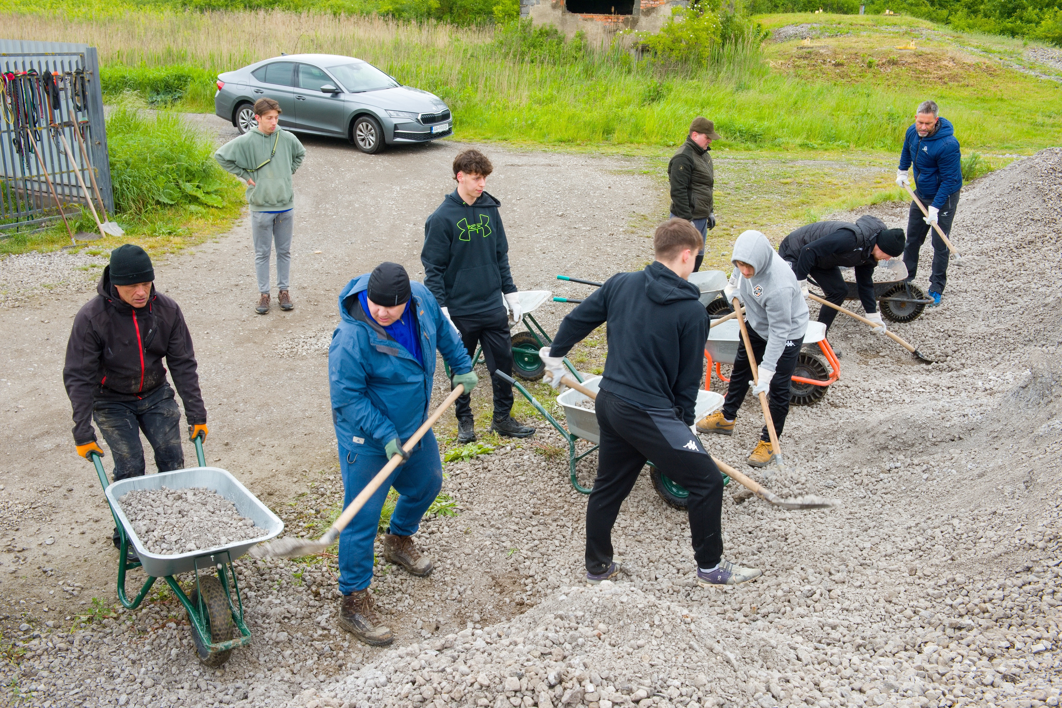 The first group consisted of "strong men". To carry gravel to the dog enclosure, exactly such were needed. Tomáš Kuriatnik, Vice President for Information Technology, Juraj Mondik, Director for Material Management and Matúš Harakaľ, Director for Accounting Services and Financial Reporting, were joined by hockey players from HC Košice Gabriel Špilár, Dominik Riečický, Anton Bartoš, Ján Bartoš, Patrik Jurčák, Matúš Havrila and Sebastián Mitro, and together with the manager of the Košice hockey club Miloslav Klíma This time they had training directly in nature. The hockey players also strengthened their muscles when carrying the pen to a new place in the paddock.