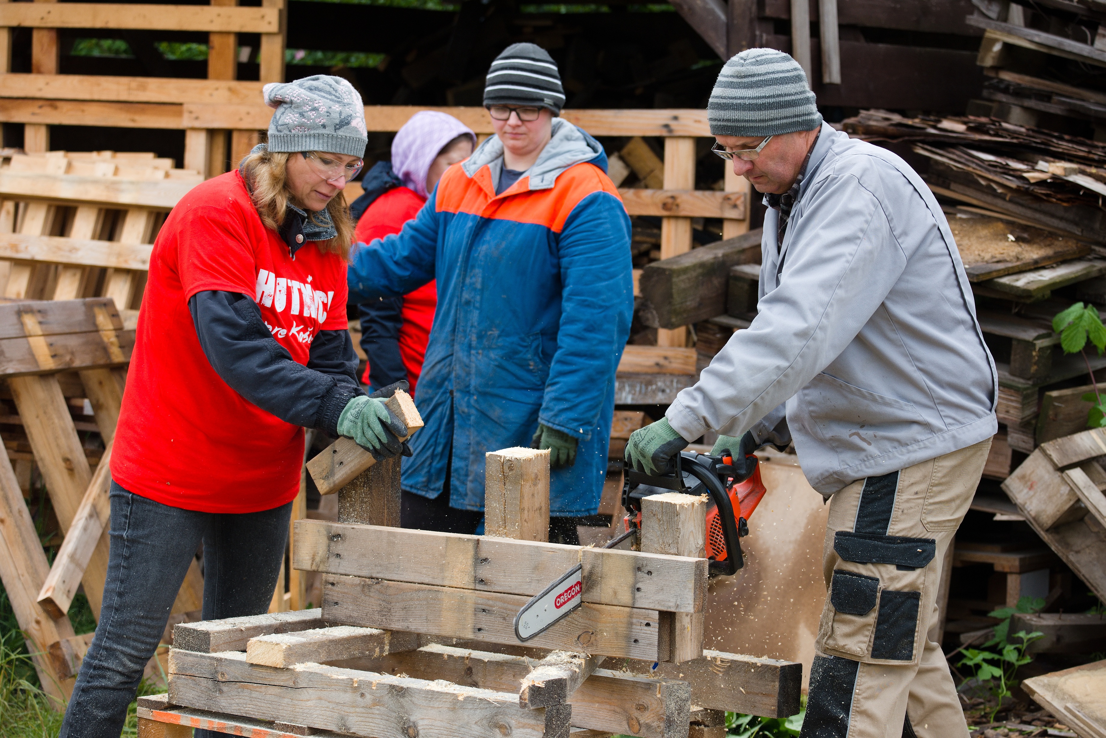 A group led by experienced sawmillers Gabriel Holub, General Sales Manager for Europe and Slavomír Gerenda, a warehouseman of stained scrolls at DZ SVa, who also volunteered blood and came to the volunteer day with his twenty-five-year-old daughter Patricia. This team also came armed with their own equipment - saws. Sawn firewood was stored in shelters by Brigita Kurucová, director of the office of the Vice President for Information Technology and leader of WIN, Eva Poláková, material management planner, Noémi Orbanová, scholarship holder and Zuzana Brindová, packaging and logistics coordinator, who came to the volunteer day with her daughters, nine-year-old Lilly and twelve-year-old Stelka and his brother-in-law Stanislav with his sons, twelve-year-old Alex and fifteen-year-old Oliver.