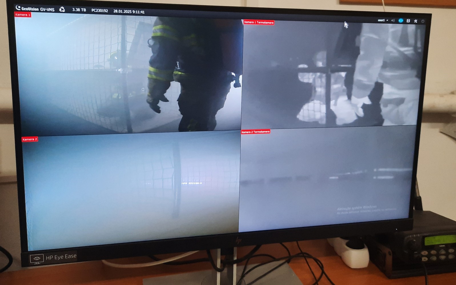 The interior of the training center is equipped with thermal cameras and the firefighter monitors the events on the screens of monitors in the room in front of the entrance.