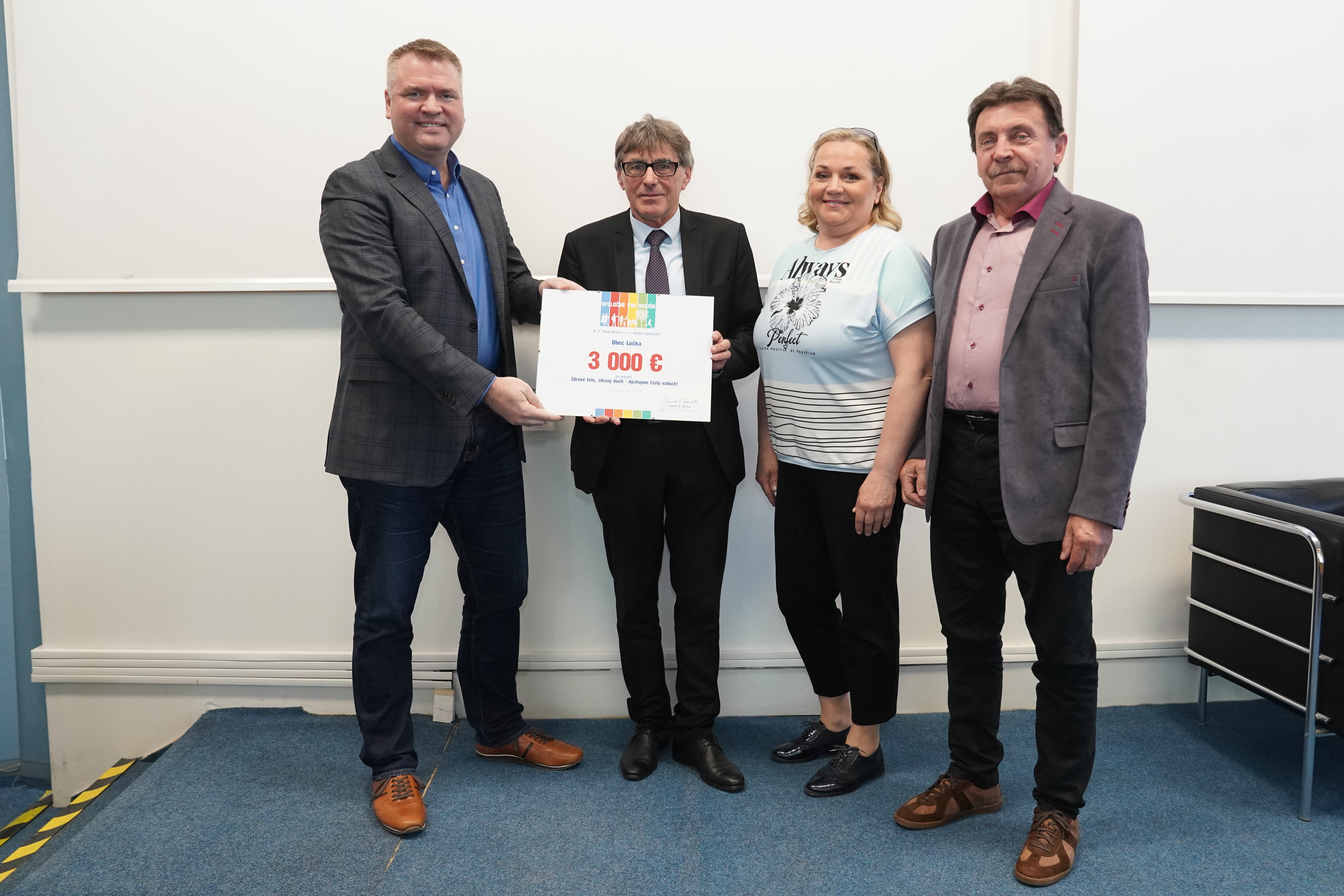 "We wanted to create a safe space that would allow residents of all ages to engage in physical activities in the fresh air: children, youth, seniors, but also residents with mental disabilities," says project coordinator Anna Sopková (in the photo when handing over symbolic checks), who continuously "supplied" us with photos and news from the "Lúčany area".