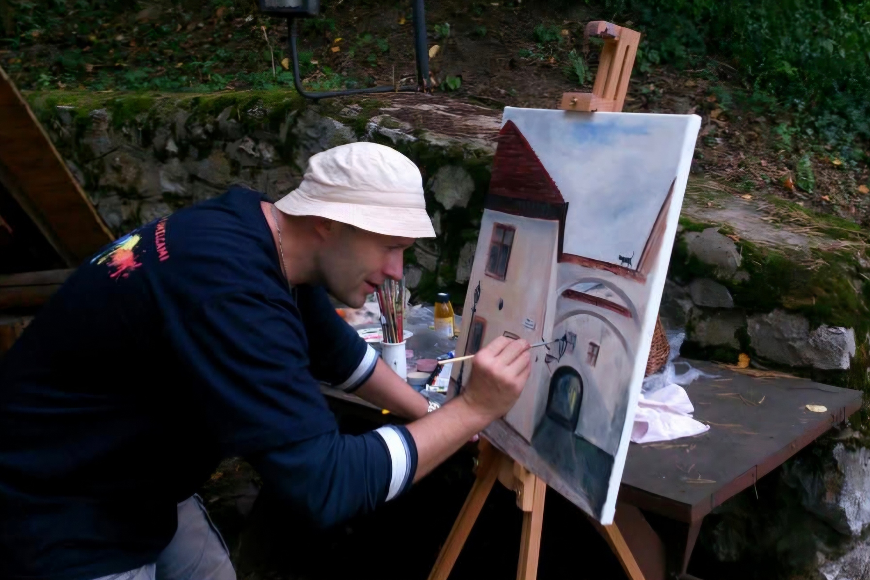 He also started painting in elementary school. First to the girls' memorials, to the T-shirts... And then he discovered more complex techniques. His first oil painting was a manor house in Betliar and he gave it to his father, who came from there. By the way, my father also worked in ironworks. His sister, who lived in the Netherlands, where she also exhibited, was also involved in painting.