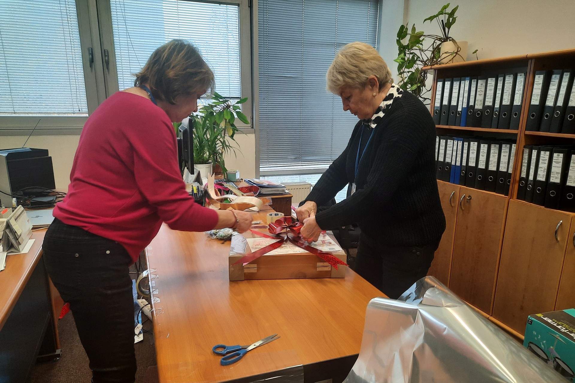 Of course, every gift should be nicely wrapped. Some brought theirs already in gift bags, others had to be wrapped and decorated with a bow.