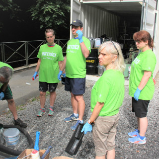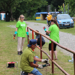 The men's team consisting of Marcel Novosad, Róbert Jeník, Norbert Mihalik, Michal Tančák and Pavol Petráš embarked on more physically demanding work. The women - Michaela and Monika Moravanské, Zita Hromotová, Monika Jeníková and Alica Ridzoňová took care of painting the railing and planting the fence, together with Igor Ridzoň, who took care of removing the rust and preparing the fence for painting. The result of their work is once again a slightly more beautiful area of the Alpinka station, which will serve all visitors to this popular location in Košice.