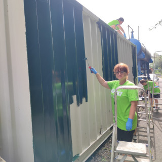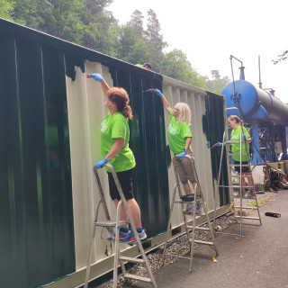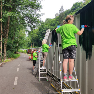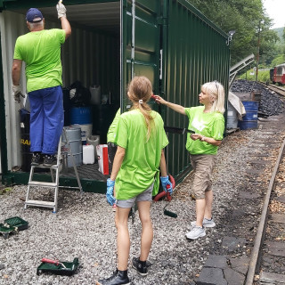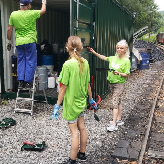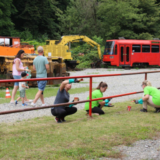 At the station in Čermel, Eva Hunyadiová with her daughter Veronika, Jana Hoffmannová with her son Ján, Andrea Mačejová and Kamil Jakubčák started painting the metal container. Roman Fedák, Marián Kušnirák, and Pavol Králik - an expert in interior painting, took care of the painting work in the building's interior under the leadership of Zuzana Lehotská from Children's Historical Railway. Eduard Kandík and Miroslav Feťko, a well - coordinated couple, took up the maintenance of the locomotives at the depot.