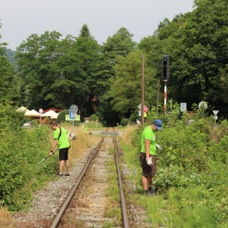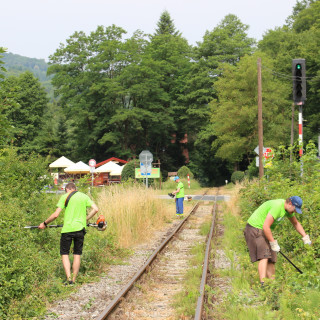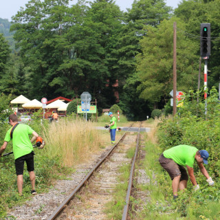 Men's hands and strength were also needed on the railway track when cleaning from overgrown trees and driftwood. František Klimo, Pavel Babej, Ľuboš Sova with his son Adam, Jozef Mlynarič and Igor Molnár together with Marián Bonko from Children's Historical Railway worked up a sweat during the hard work.