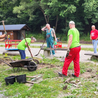 The largest group of volunteers worked at Alpinka station under the leadership of Peter Kočišek. There was more than enough work, from installing the fence around the children's playground, which was improved by steelmakers last year, to planting a hedge, painting the railing and maintaining the area.