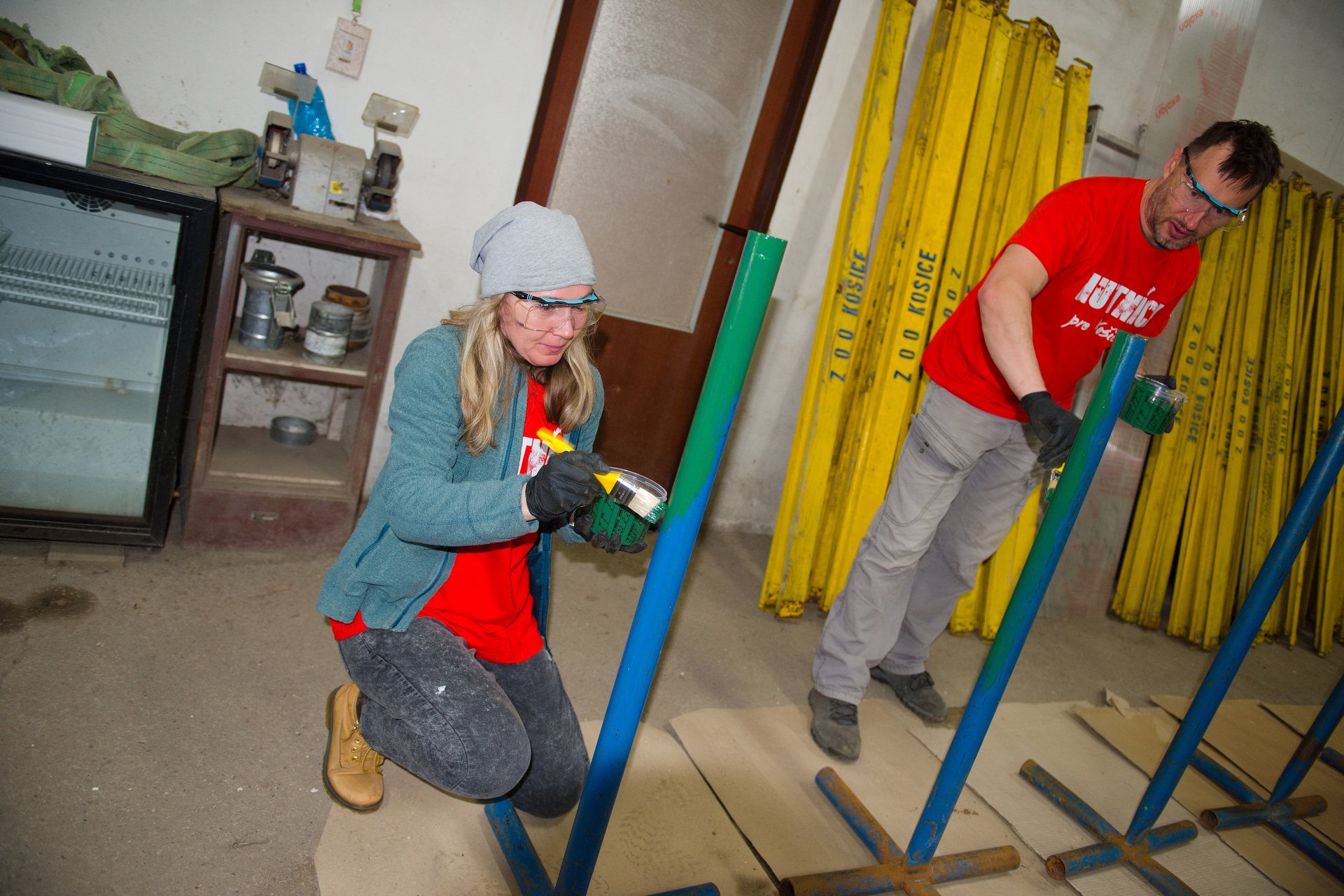 After all, there was no substitute program to be thrown away. In two large halls, metal stands and wooden slats, which serve as barriers, were waiting for the skilful hands of our volunteers. "We have almost a hundred of them. We use them when we need to divide the space, when directing visitors, as temporary mobile barriers, for example even now during foot-and-mouth disease, so that people do not come into contact with ungulates," said chief zoologist Patrik Pastorek, adding that these barriers have not been treated since they were purchased, back in the early days of the Košice Zoo.
