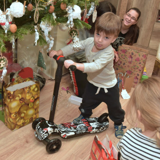 Samozrejme aj tu, tak ako v Podolínci, si deti či už z profesionálnych rodín alebo samostatných skupín Slnečníc, Bocianov, Nezábudiek, Sokolov, či Lienok pripravili pre svojich donorov kultúrny program. Rozihrali struny gitár, zaspievali, zarecitovali, zavinšovali. A po zaslúženom potlesku už všetci po očku netrpezlivo pozerali pod stromček na kopu darčekov. Ktorý je asi ten ich? Nuž, bolo ich naozaj neúrekom. Ušli sa pre každého. A presne také, aké si vysnili.