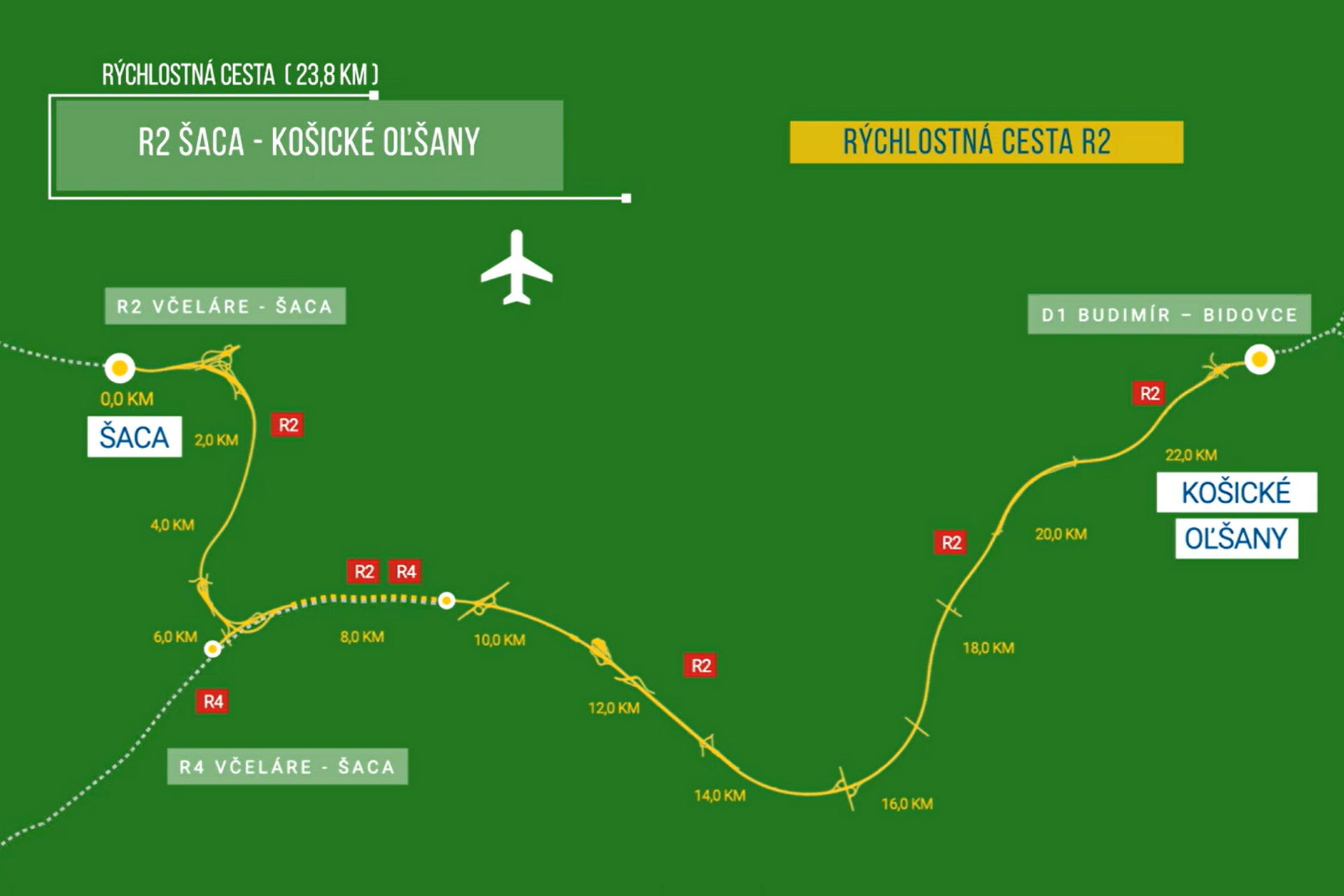 Národná diaľničná spoločnosť aktuálne stavia II. úsek Košice (Juh) – Košické Olšany, na ktorú bude napojený I. úsek Košice (Šaca) – Haniska. Výstavbu tohto takmer 7-kilometrového pokračovania ťahu R2 plánuje začať verejne súťažiť už v tomto roku. Odhaduje, že výstavba bude stáť niečo vyše 140 miliónov eur. Nový úsek bude napojený na aktuálne stavanú časť R2 Košice, Šaca – Košické Oľšany, II. úsek. Na tento úsek už je vydané územné rozhodnutie, dodaná dokumentácia na stavebné povolenie a stavba je takmer úplne majetkovo-právne vysporiadaná. Na stavbu je zabezpečené i finančné krytie v aktualizovanom vládou schválenom harmonograme cestnej infraštruktúry.