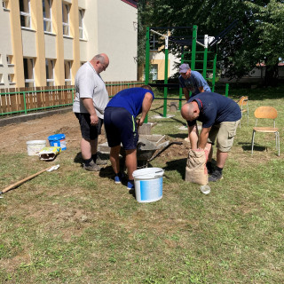 Približne dvesto hodín tu odpracovali dobrovoľníci z radov rodičov žiakov ZŠ, ale aj našich kolegov z USSK. Koordinátorom projektu bol Rastislav Lipták, zmenový predák elektrikár z DZ Oceliareň. Ako spomenul, o dobrovoľníkov nebola núdza a práca im šla od ruky. Na realizácii sa podieľali aj ďalší kolegovia z nášho podniku: Ladislav Gondoľ, Imrich Hanzeľ, Marián Lipták, Marek Deák, Martin Juhasz.