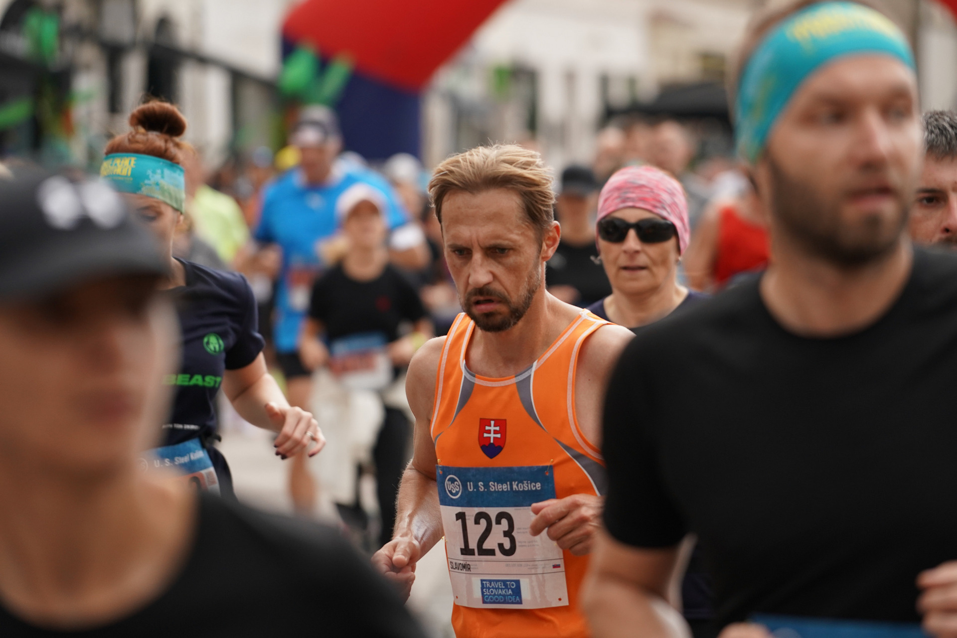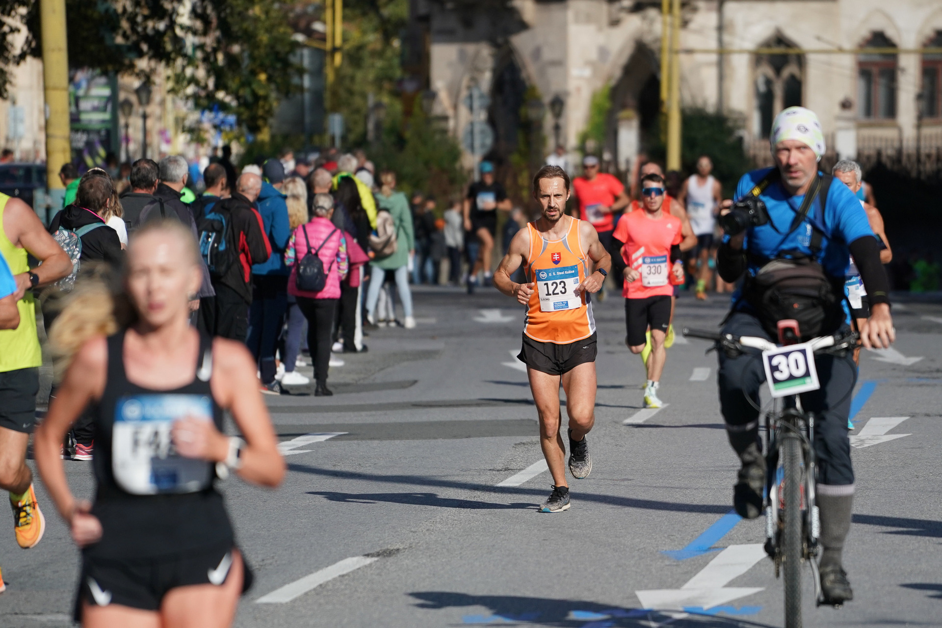 Na titulnej snímke v poli bežcov Jozef Sciranko, ktorý aj po šesťdesiatke zvládne maratón za 3:46:31.