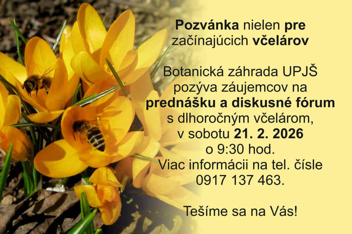 Botanická záhrada UPJŠ pozýva našich zamestnancov, ktorí sa venujú včelárstvu alebo sa o toto tradičné remeslo zaujímajú, na stretnutie s Martinon Lukáčom, dlhoročným včelárom v botanickej záhrade, ktorý vykonáva aj lektorskú činnosť.