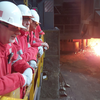 Potom čo sa vzácna návšteva vyzbrojila potrebnými ochrannými pomôckami, na pôde Vysokých pecí ju srdečne privítal Michal Janok, riaditeľ divízneho závodu Vysoké pece (DZ VP), spolu s Dušanom Petrom, hlavným manažérom pre podporu, Marekom Kántorom, vedúcim prevádzky výroba surového železa, Dušan Ivanišinom, vedúcim prevádzky príprava výroby a Samuelom Sterankom, vedúcim prevádzky Údržba.