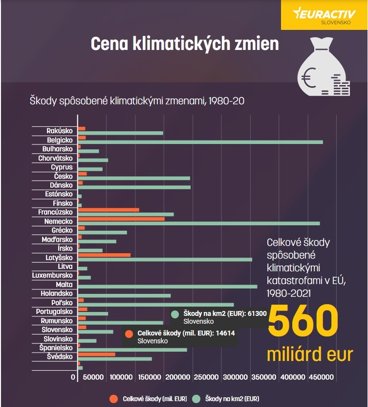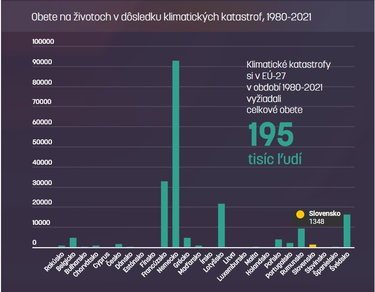 Klimatické katastrofy za štyridsať rokov v Európskej únii (EÚ) spôsobili škody v celkovej hodnote 560 miliárd eur. Táto suma predstavuje viac ako štyri ročné rozpočty EÚ. V rovnakom období si vyžiadali viac ako 195-tisíc obetí. Iba na Slovensku si vyžiadali vyše 1 300 ľudských životov.