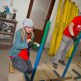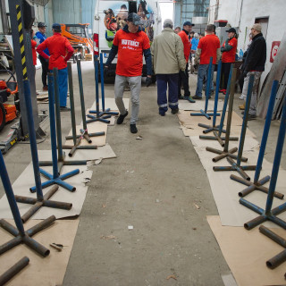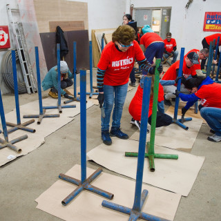 „Na zahodenie“ nebol napokon ani náhradný program. V dvoch veľkých halách čakali na šikovné ruky našich dobrovoľníkov kovové stojany a drevené latky, ktoré slúžia ako zátarasy, „Máme ich takmer sto. Používame ich, keď potrebujeme rozdeliť priestor, pri usmerňovaní návštevníkov, ako dočasné mobilné bariéry, napríklad aj teraz počas slintačky a krívačky, aby ľudia neprichádzali do kontaktu s kopytníkmi,“ spresnil vedúci zoológ Patrik