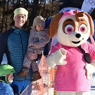 Na detskom svahu si to užili aj ďalšie rodinky z nášho projektu, aj keď nesúťažne. Ivan Tarnóci prišiel so sestrou a syna Jakubka rád „poťahal“ na boboch. „Sme na Jahodnej, aj na firemných zimných hrách prvý raz. Veľmi sa nám tu páči,“ povedal Dominik Szanisló. Malého Doriana, najviac zaujímali maskoty.