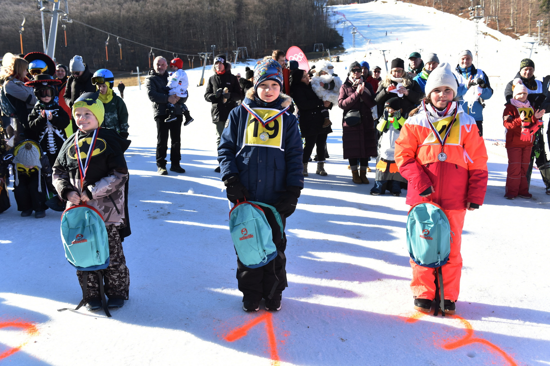 Z pódiových umiestnení, ktoré boli veľmi vtipne „postavené“ farbou na snehu, sa tešili nielen deti ale aj ich rodičia.