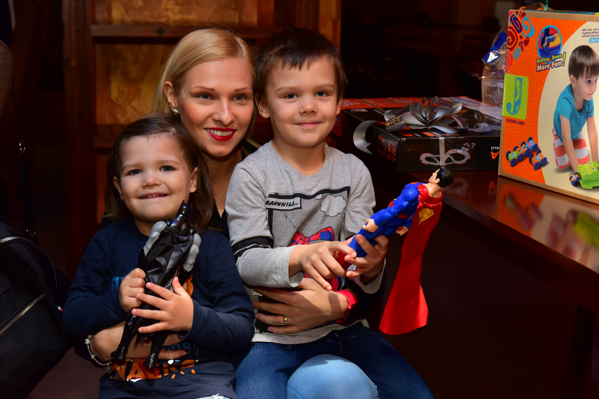 Chlapci Teodor a Timon Vagašovci nevedeli, z čoho sa majú skôr tešiť. Či z autodráhy, ktorú dostali obaja, alebo z postavičiek Batmana a Supermana. Autodráhy im mama rozkladať pochopiteľne nedovolila, na to bude čas až doma, ale postavičky sa dali rozbaliť hneď.