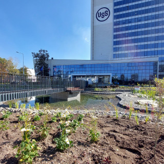 Útroby budúceho jazierka, ktoré bude súčasťou revitalizovanej zelenej zóny pred hlavnou administratívnou budovou, už realizátori stavby napúšťajú vodou. Teraz je už temer všetko v rukách botanikov, vďaka ktorým sa tvár diela postupne mení a krásnie každým dňom. Ak počasie nebude robiť prieky a vydrží, do konca októbra by mali vysádzanie väčšiny rastlín vhodných do vodného biotopu ukončiť.