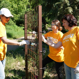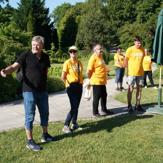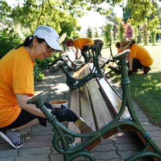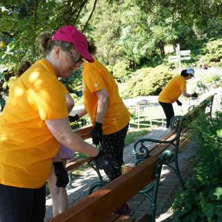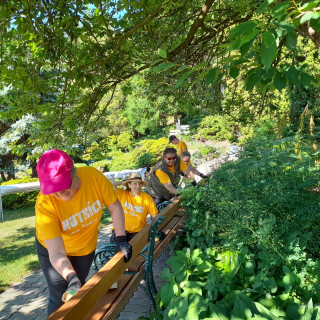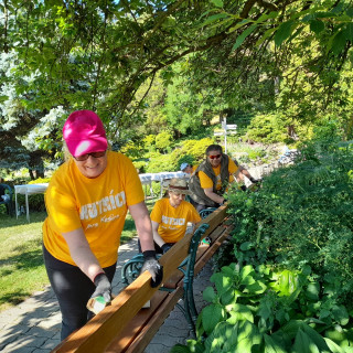 Kráčajúc po botanickej záhrade sme kde tu natrafili na ďalšie skupinky dobrovoľníkov. Pri natieraní lavičiek, altánku a kovových konštrukcií sme mohli stretnúť kolegyne z predaja Auroru Jajkovú a Dianu Mašľanovú s dcérou Zuzkou. Podobné práce vykonávali aj Marta Durňaková z účtovníctva, silno podporovaná dvomi mužskými rodinnými príslušníkmi, synom Vladimírom a priateľom Milošom. Podujatie nevynechala ani dlhoročná dobrovoľníčka Viera Verešová z dopravy.