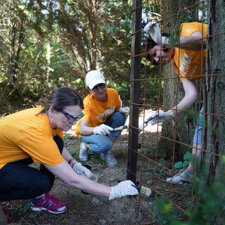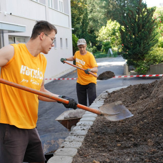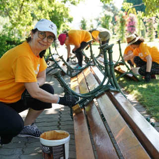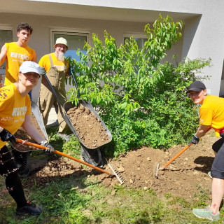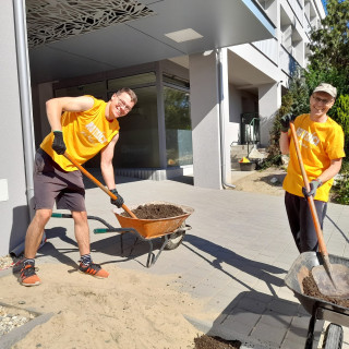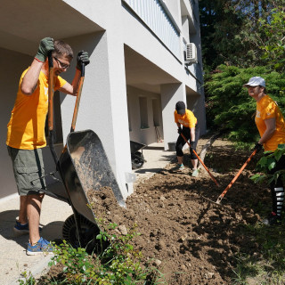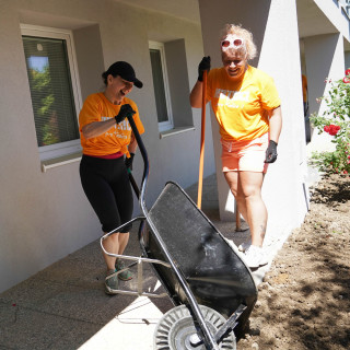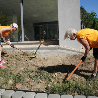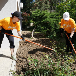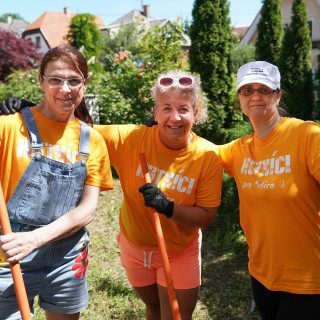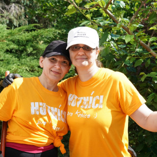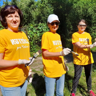 Na dni dobrovoľníkov sa vždy teší aj Mária Krúpová z IT. „Toto podujatie ma vždy pozitívne nakopne. Stretnem tu nových ľudí a spoznám aj kolegov, s ktorými v práci spolupracujem, ale osobne som ich ešte nemala možnosť stretnúť.“ Zaujímavou členkou jej natieračskej partie bola aj štipendistka USSK Lenka Trembecká, študujúca v škótskom Glasgowe, ktorá sa aktuálne na stáži v Košiciach venuje najmä programovaniu a analýze dát v oblasti solárnych turbín. Dobročinnosť a dobrovoľníctvo je medzi našimi kolegyňami z IT hlboko zakorenené, lebo Evu Stanovú, Helenu Ondejkovú i Moniku Múdru na našich firemných podujatiach stretávame pravidelne, tentoraz v tretej natieračskej skupinke. Skupinu dobrovoľníkov v zázemí pri vyplievaní záhonov dopĺňala Jana Radianská z nákupu s priateľkou Erikou.