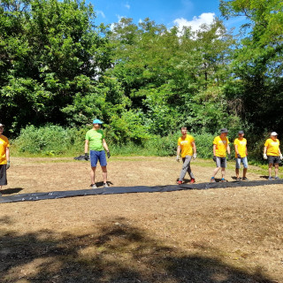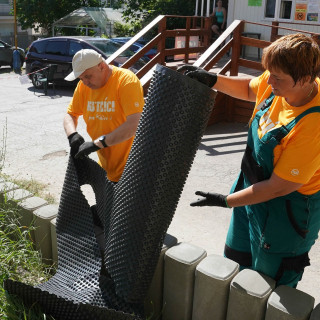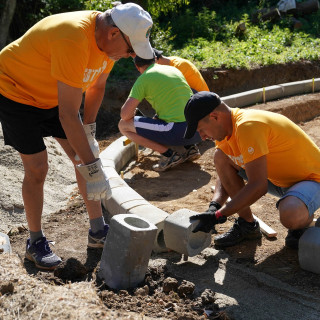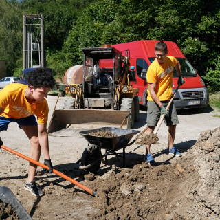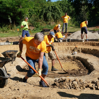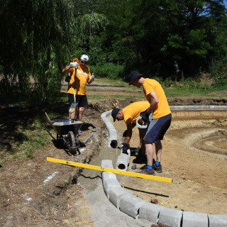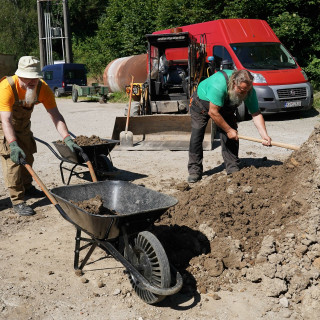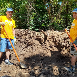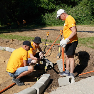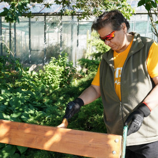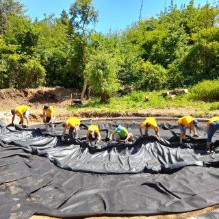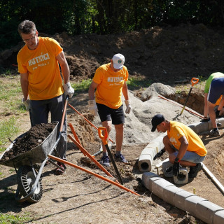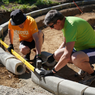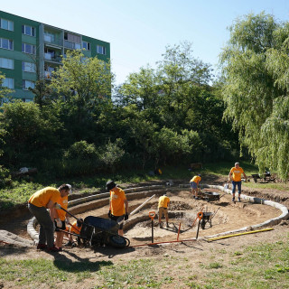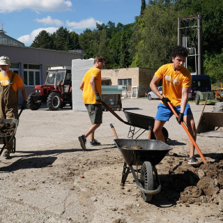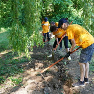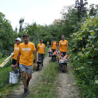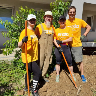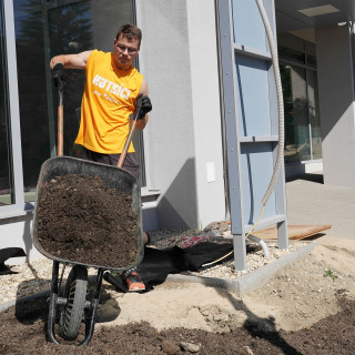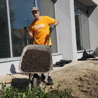 Botanická záhrada sa mení z roka na rok. Od našich posledných dobrovoľníckych dní prešla rekonštrukciou hlavná budova a pribudlo aj nové návštevnícke centrum. Práve pri ňom mohli rodiny s deťmi, ktoré v horúci sobotný deň do botanickej záhrady prúdili v hojnom počte, stretnúť prvú skupinu našich dobrovoľníkov. Pripraviť terén na záhradnú výsadbu sa podujali Igor Horňák z údržby s manželkou Jarmilou, Tatiana Chovanová i štipendista USSK Ján Kapráľ. Odstrániť burinu, založiť nopovú fóliu, nanosiť a rozhrabať novú voňajúcu zeminu im zabralo celé dopoludnie. Obďaleč od nich posilňovali svalstvo pri podobnej činnosti ďalší hutníci: Peter Bencko z ľudských zdrojov, štipendista Martin Mašľan a Kosmas Bekiaris z IT, ktorý prišiel opäť pomôcť do botanickej aj s manželkou Marianou a sestrou Alenou. Tá okrem hrablí dokáže dobre pracovať aj so šedými mozgovými bunkami a onedlho bude Slovensko reprezentovať na 44. šachovej olympiáde v Indii.
