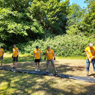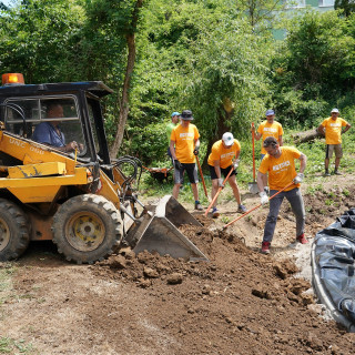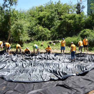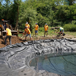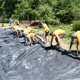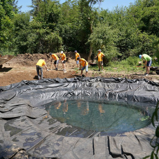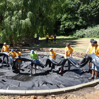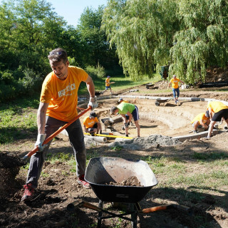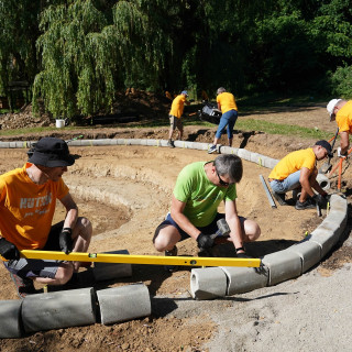 Ako s úsmevom pri zahájení podujatia poznamenal Robert Gregorek, vedúci úžitkovej a dekoratívnej flóry, „pre dobrovoľníkov z USSK vždy pripravíme aj nejakú lahôdku. Vďaka ich nasadeniu a precíznosti vždy všetko klapne, ako má.“ Pokiaľ v minulých rokoch to bola napr. výstavba rozária, kde sa nielen mladomanželia, ale i ostatní návštevníci radi fotia, minulý rok to bolo dokončenie terénu okolo nových exteriérových fitness zariadení a tentokrát bola v pláne revitalizácia časti historického rybníka. Ak by sme sa pozreli na stav pred dňami dobrovoľníkov, ako sme ho popísali v článku U. S. Steel Košice - Botanickú záhradu nespoznáte! (usske.sk) a následne po podujatí, zmena je neuveriteľná. To vyzdvihuje aj riaditeľ Botanickej záhrady UPJŠ Pavol Mártonfi. „Na dobrovoľníkov z U. S. Steel sa môžeme vždy spoľahnúť a plánovať aktivity, ktoré našu záhradu viditeľne menia k lepšiemu rok čo rok.,“ nešetril slovami chvály. Kusisko roboty pri kaskádovaní brehov budúceho rybníka, kde plánujú botanici chovať chráneného karasa, odviedli František Chovan a Peter Chytil z údržby, Branislav Klobošič a Marek Manica z finančného úseku a zahanbiť sa nedali ani dvaja lekári Tomáš Kollár a Imrich Šoltés. Najťažším orieškom pre celú skupinu, doplnenú, samozrejme, ako na každom inom mieste, odbornými pracovníkmi z botanickej záhrady i kvestorom univerzity Michalom Tkáčom, bolo premiestnenie izolačnej fólie, vážiacej niekoľko stoviek kilogramov. Ale aj to chlapi úspešne zvládli a voda do rybníka mohla začať pritekať. Aj vďaka Monike Falisovej z finančného úseku a Barbare Kollárovej, ktoré spolu s Martinou Gregorekovou a riaditeľom Mártonfim dokončili práce pri vodovodnom prítoku.