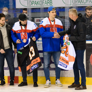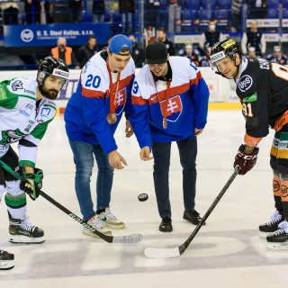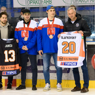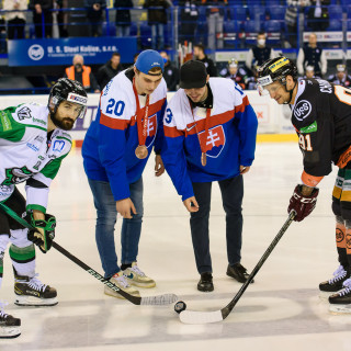 Pred zápasom s Novými Zámkami sme mohli vidieť milú udalosť, keď slávnostné buly hodili bronzoví medailisti Tomáš Jurčo a Juraj Slafkovský. Žiaľ, duel oceliarom nevyšiel podľa očakávaní a súperovi podľahli.