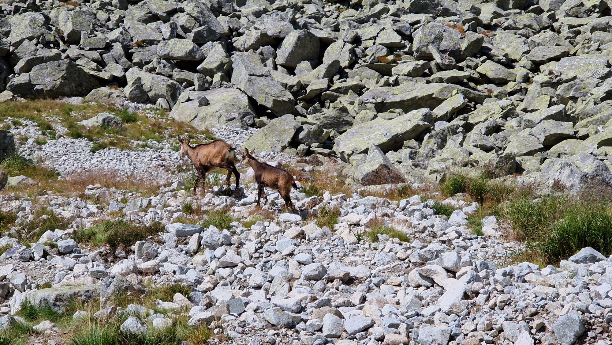 Po prestávke nás čakal zostup z Gerlachu cez Batizovský žľab. Meníme poradie a horský vodca zostupuje ako posledný. Terén počas prvej polhodiny zostupu je náročnejší. Centrálna časť Batizovského žľabu je už o niečo ľahšia. Približne po hodine sme dorazili ku kramliam. Istení lanom pomaly zliezame kramle až k začiatku Batizovskej próby. Toto je najnáročnejšia časť zostupu. Dole pri Batizovskom plese sa pásli kamzíky, ktoré prišli do našej blízkosti.