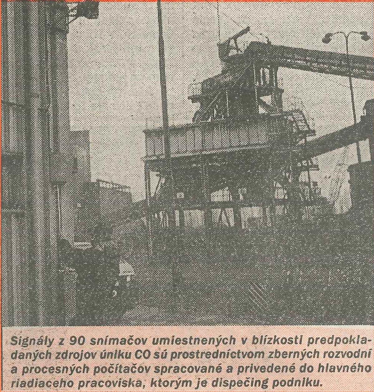 Komplex zariadení umožnil sledovať a vyhodnocovať prípadné úniky CO a chrániť osoby pohybujúce sa v areáli fabriky. Signály z 90 snímačov rozmiestnených v blízkosti predpokladaných zdrojov úniku CO sú prostredníctvom zberných rozvodní a procesných počítačov spracované a privedené do hlavného riadiaceho pracoviska, ktorým je dispečing podniku. Tu sa údaje vyhodnocujú a v prípade úniku CO sa vyhlasuje poplach. Signálom je pokrytá celá, viac ako sedemsto hektárová, plocha huty.
