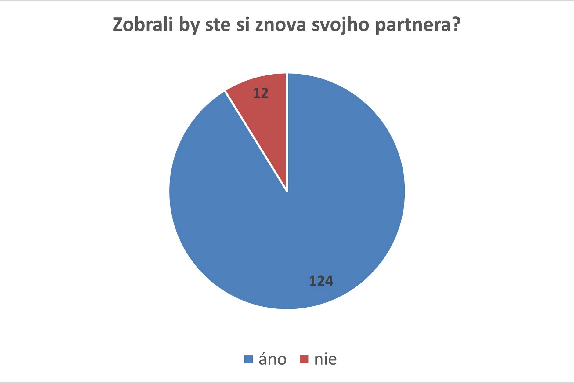 Drvivá väčšina, 124 ľudí je so svojim „pôvodným výberom“ spokojná a svojmu partnerovi by povedala áno aj po rokoch spolužitia.