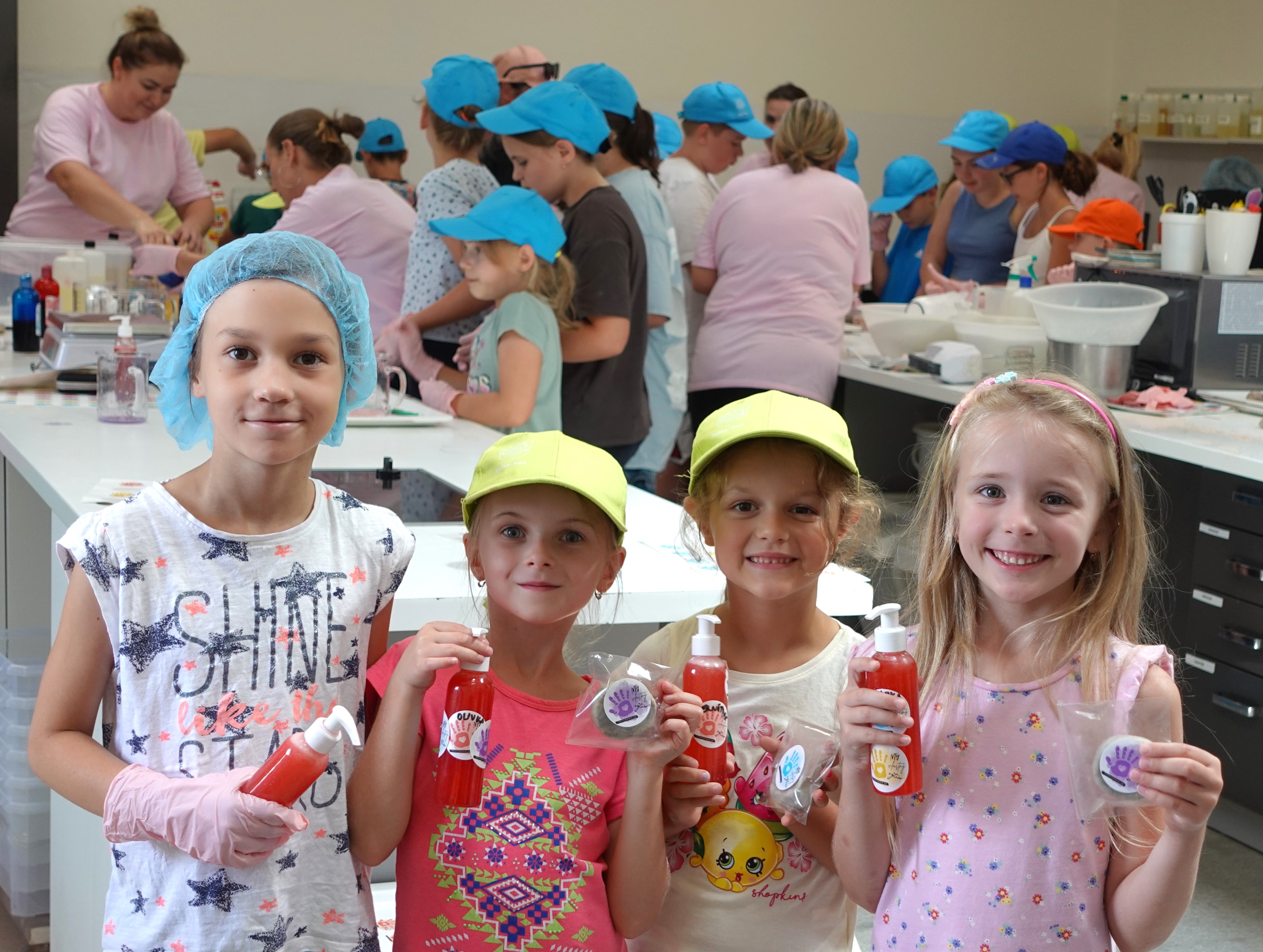 „V Kapušianskych Kľačanoch sme mali dohodnutú exkurziu vo firme, ktorá vyrába prírodnú kozmetiku. Veľmi si to vážim, pretože bežne takéto návštevy neprijímajú. Dokonca kvôli nám zastavili výrobu. Deťom sa neskutočne venovali, mohli si vyrobiť kozmetické prípravky. Domov prišli s voňavými šampónmi, sprchovacími penami, šumivými guľami do kúpeľa. V ten večer sa kúpal celý tábor, všetci chceli vyskúšať, čo si vyrobili.“
