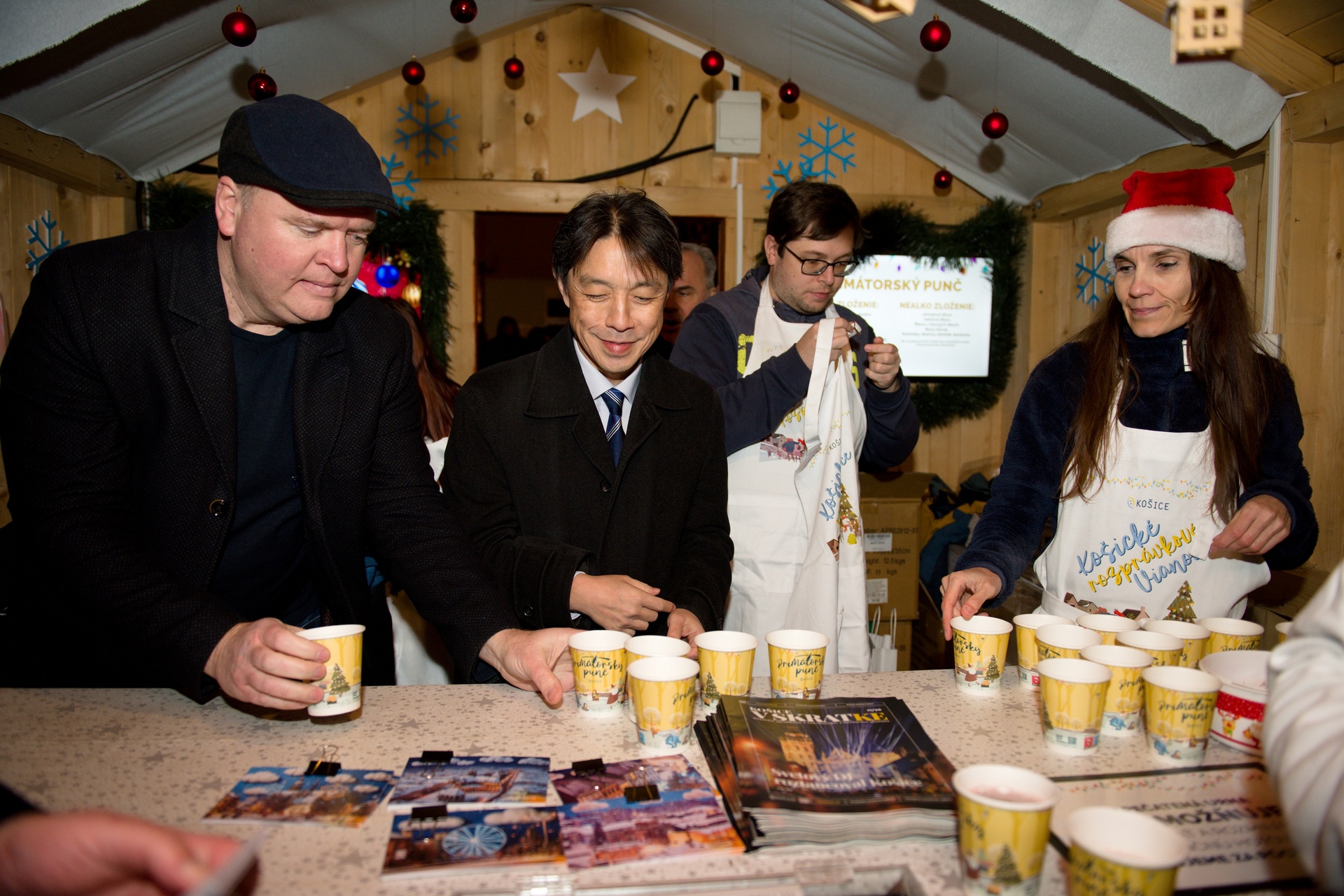Po rozsvietení vianočného stromu a Hlavnej ulice sa Mike Piekut a Isao Takenami vybrali spolu s primátorom mesta do stánku, v ktorom podávali návštevníkom tradičný Primátorský punč, ktorý sa po novom bude ponúkať až do Silvestra. Výťažok pomôže neziskovej organizácii Sociálne bývanie, pacientskej organizácii Liga proti osteoporóze Slovensko – Klub osteoporózy v Košiciach, neziskovej organizácii Empatia plus a občianskemu združeniu Hrdlička.