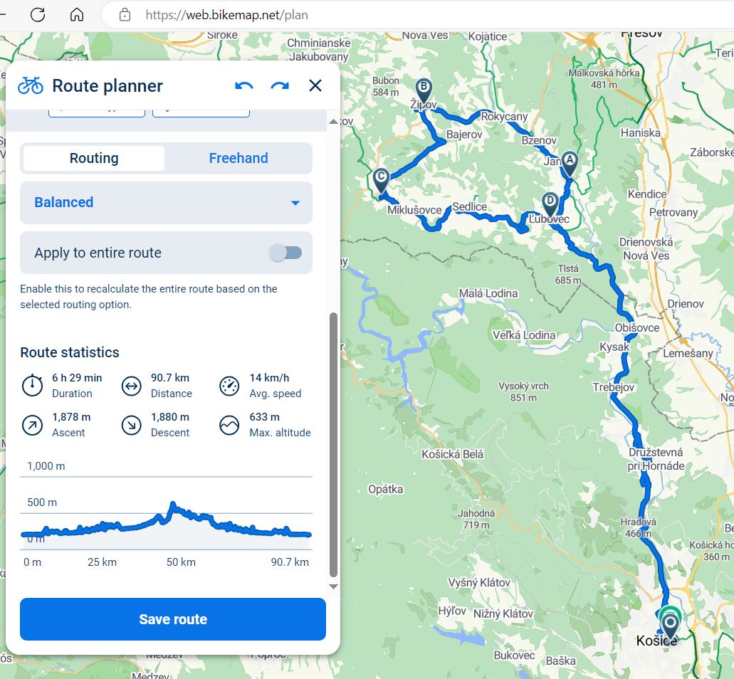 Cyklotrasa Košice - Radatice (A) - Žipov (B) - Klenov (C) - Ľubovec (D) - Košice:
