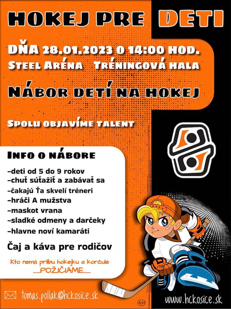 Nábor do hokejovej prípravky stále prebieha. Už najbližší víkend si budú môcť Vaše deti užiť zábavu, kde si zasúťažia, budú ich viesť skúsení tréneri, stretnú hráčov A-mužstva a nášho maskota. Taktiež dostanú sladké odmeny a darčeky. Pre rodičov je pripravné občerstvenie.