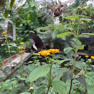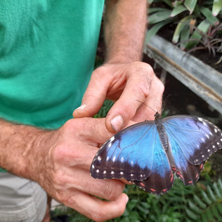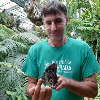Netreba veľa slov, stačí sa ísť pozrieť. Motýle sú všade; jedny poletujú okolo vás, iné oddychujú na kmeňoch stromov alebo sa kŕmia na sladkom mangu či banánovníku. Mnohé svoju krásu ukážu až po roztvorení krídel. Motýle exotických trópov určite zaujmú každého. Výstava je otvorená denne od 9. do 17.00, posledný vstup do skleníka s motýľmi je však možný o 16.30 hod. Zamestnanci botanickej záhrady vedia k jednotlivým druhom poskytnúť zaujímavé informácie. Na snímke Robert Gregorek, vedúci oddelenia okrasnej a úžitkovej flóry s motýľom Morpho peleides, pochádzajúcim z Južnej a Strednej Ameriky, ktorý je len jedným z približne stovky predstavovaných druhov.