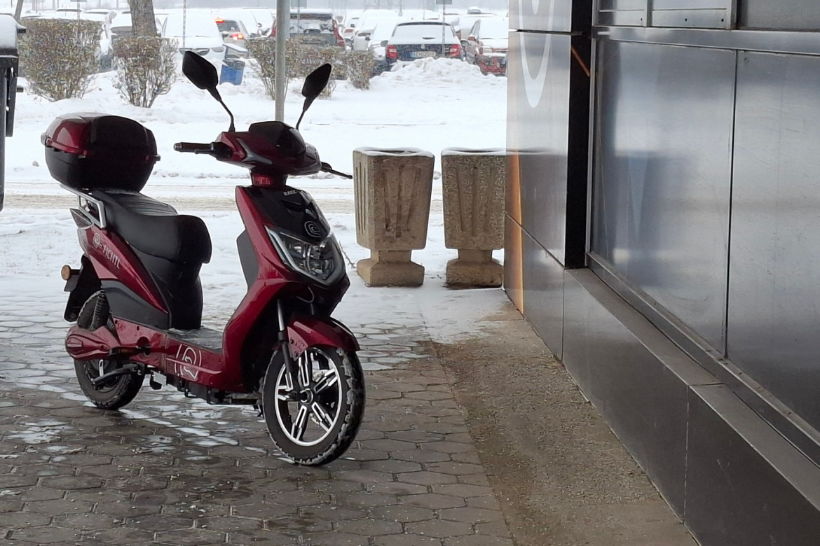 No a druhý raz ma prekvapil majiteľ tohto subtílneho „vozidielka“, ktoré bolo zaparkované pri budove Vonkajších vzťahov. To ako vážne??? Po chvíli prišiel, opatrne nasadol, naštartoval a pohol sa vpred, pričom sa od zeme odrážal nohami. Odbočil smerom von z podniku. Neviem, aká dlhá cesta ho čakala, kam šiel, ale kebyže tak idem autom a zbadám ho pred sebou, na zasneženej ceste, na ktorej je celkom problém udržať sa a nieto ešte predbiehať, možno by som sa za ním vliekla až do zajtra .