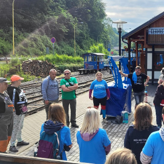 Na staničke ma už vítajú domáci, Igor Holéczy, prednosta stanice, Peter Kočiško, prednosta depa. Postupne prichádzajú kolegovia - dobrovoľníci, z ktorých mnohí pomáhajú železničke už veľa rokov. Detská železnica sa stala tradičným, obľúbeným miestom a má už svojich verných pomocníkov.