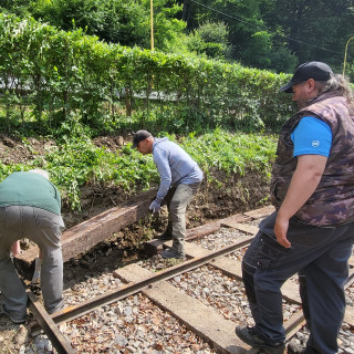 Tento rok sme pracovali na dvoch stanovištiach, v Čermeli a na Alpinke. V stanici Čermeľ sa pustili do údržby rušňov Edo Kandík a Miroslav Feťko, odborníci nielen na dieselové ale aj parné rušne. Skupinka zdatných chlapov Igor Molnár, Michal Tančák a Štefan Vojtko spevnila svah nad traťou drevenými podvalmi. Nový letný zostrih živého plota, ktorý oddeľuje cestu od stanice v Čermeli som dostal na starosť, tak dúfam, že živý plot bol s mojou prácou spokojný .