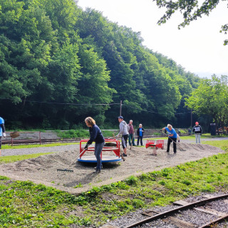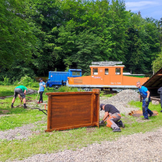 Na Alpinke sa početná skupinka dobrovoľníkov pod vedením Igora Holéczyho a Petra Kočiška s nadšením a odhodlaním urobiť všetko, čo je v pláne, zhostila úpravy areálu. Kosenie okolo drezinového oválu si zobral na starosti Róbert Žihlavník, partia v zložení Róbert Jeník, Roman Fedák, Matúš Bakši osadila nové drevené informačné tabule.