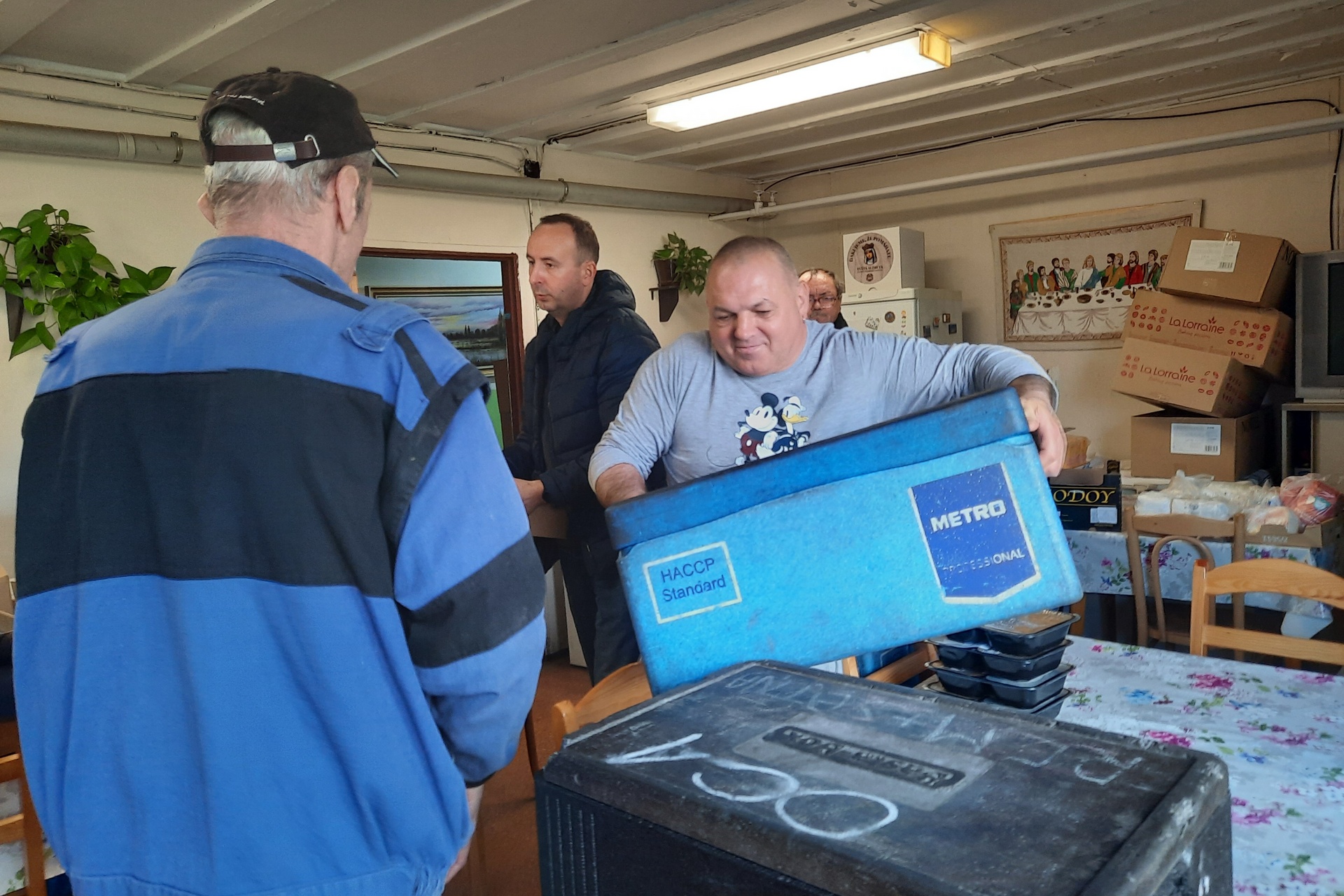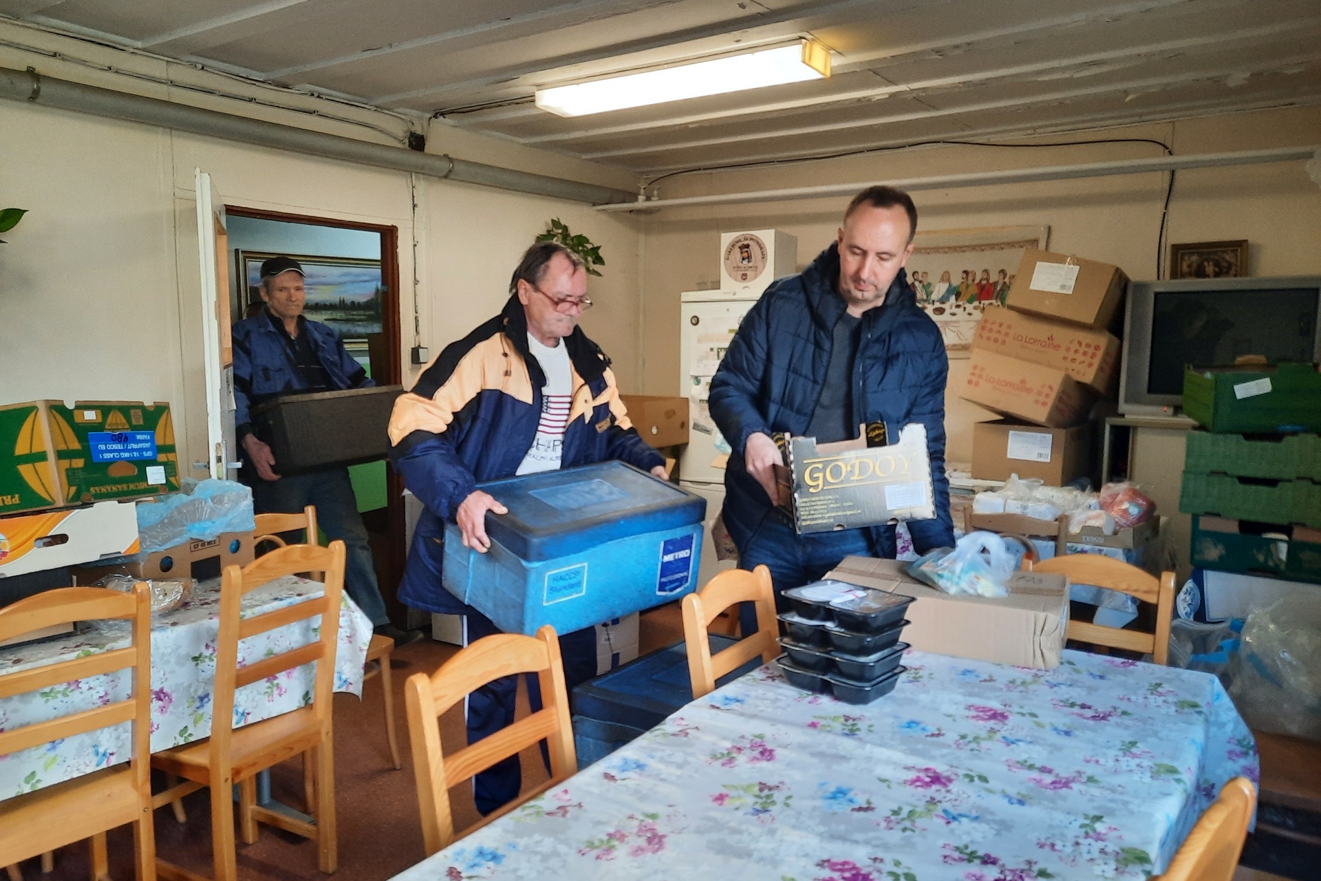 Obedy, ktoré sme doručili do Charitného centra na Bosákovú, dostanú aj ľudia bez domova, ktorí sa zdržujú v Útulku Emauzy – nocľahárni na Fialkovej ulici.