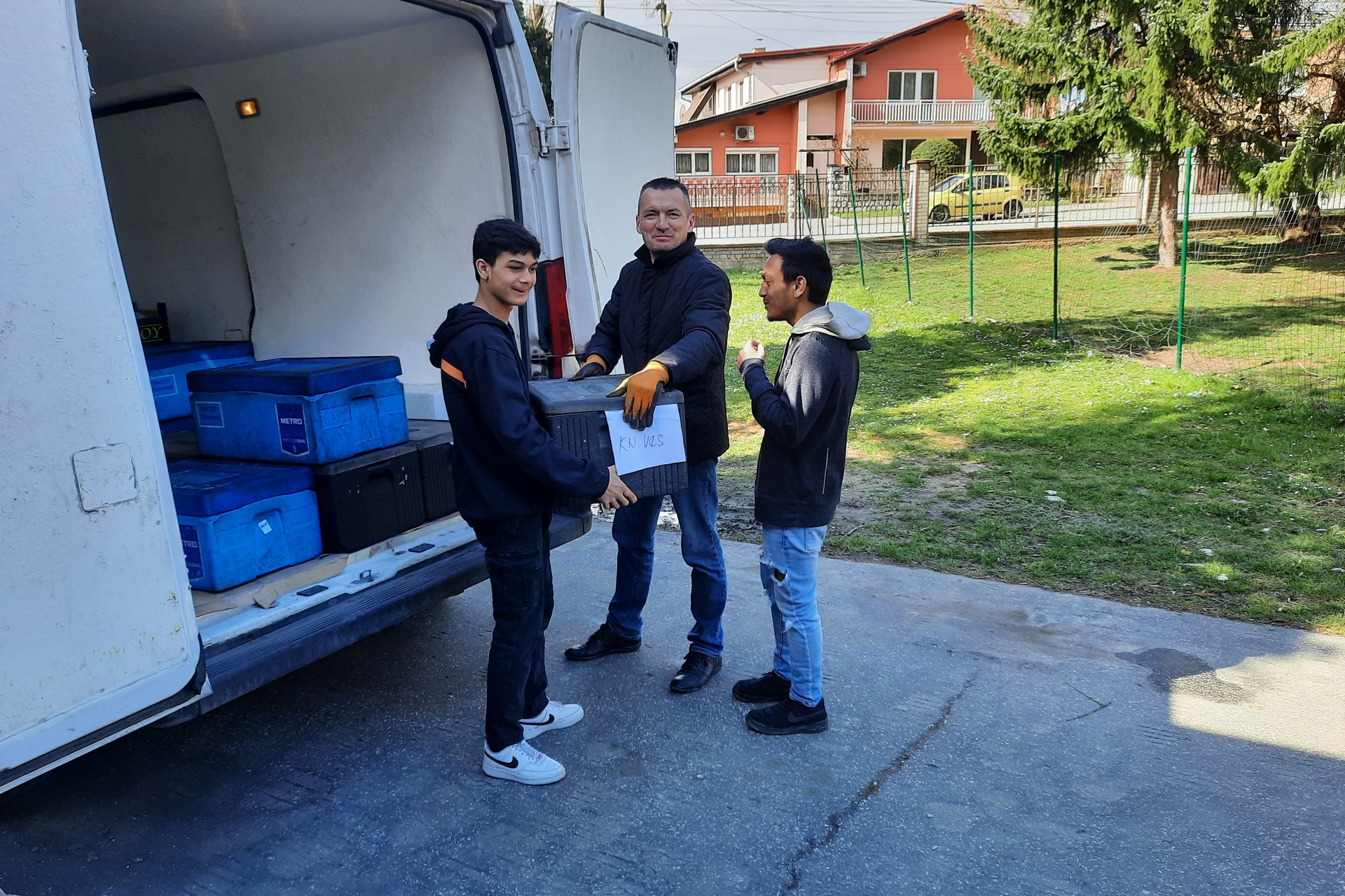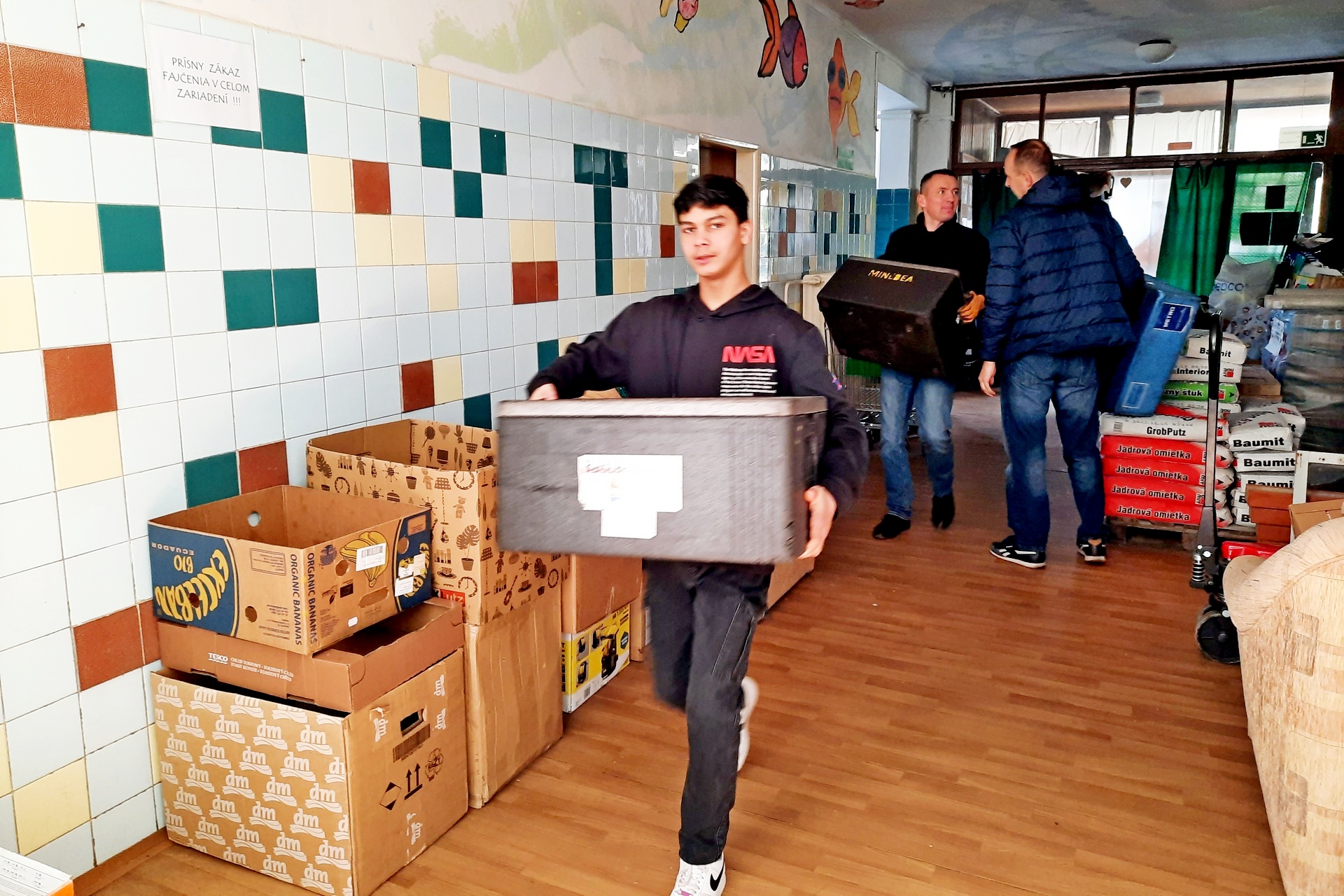 Dnes sme mnohým ľuďom urobili veľkú radosť. Dopoludnia sme s Radoslavom Lakatošom a Kamilom Kollarčíkom zo spoločnosti Delirest rozviezli prvú várku obedov, ktoré darovala takmer stovka železiarov. Prvou zastávkou bolo Krízové centrum pre matky s deťmi v Košickej Novej Vsi.