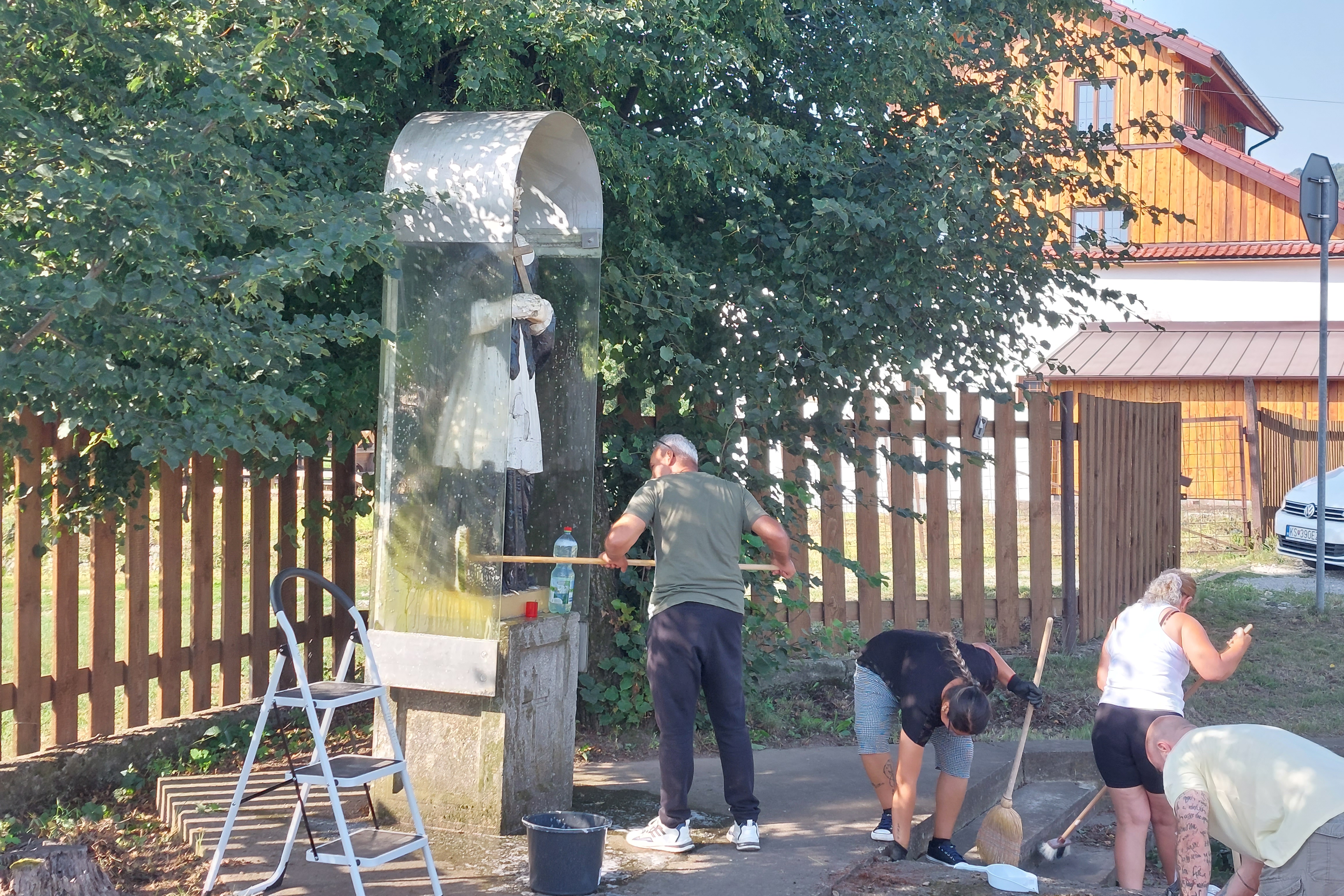 V budove vodného mlyna bolo potrebné ošetriť artefakty, vyrobiť vitríny, zhotoviť informačné panely a upraviť vstupnú časť do areálu. Ošetrené a upravené boli aj lokálne pamätihodnosti ako kríže, socha sv. Jána Nepomuckého či pamätné tabule. Za vyčistenie ich okolia, sadové úpravy a nátery príslušných konštrukcií zodpovedal náš kolega Peter Zahumenský z úseku pre informačné technológie.