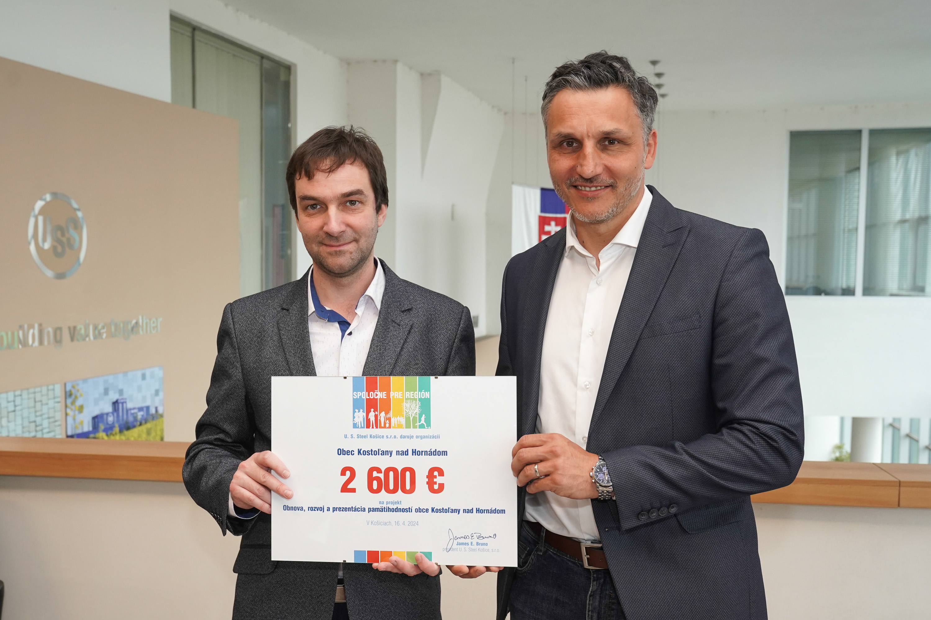 O projekte porozprával Anton Medvec, starosta obce Kostoľany nad Hornádom (na fotografii vľavo, s Petrom Zahumenským):