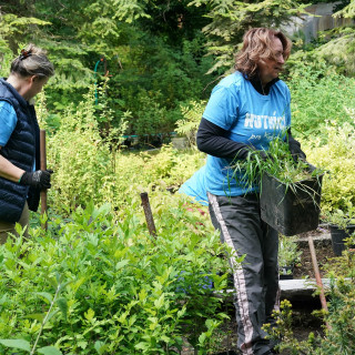 Neďaleko, skrytá z zeleni, pracovala skupinka žien, ktoré zo záhonov vyplievali burinu: Eva Stanová, Alica Mašlejová, Mária Krúpová, Zora Horváthová s posilou, Andrea Mačejová, Dita Maďarčíková aj Barbara Kollárová. Sú to všetko ostrieľané dobrovoľníčky, ktoré dlhodobo nezištne pomáhajú.